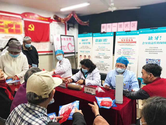 4月1日,由东明路街道新月一居民区党支部与上海徐浦中医院支部委员会联合开展“喜迎建党100周年、健康服务进社区”公益公益活动。上海徐浦中医医院安排中医内科、口腔科医生专家提供健康科普、内科口腔科健康咨询、为居民提供测血压、发放爱心口罩、防疫包等活动。