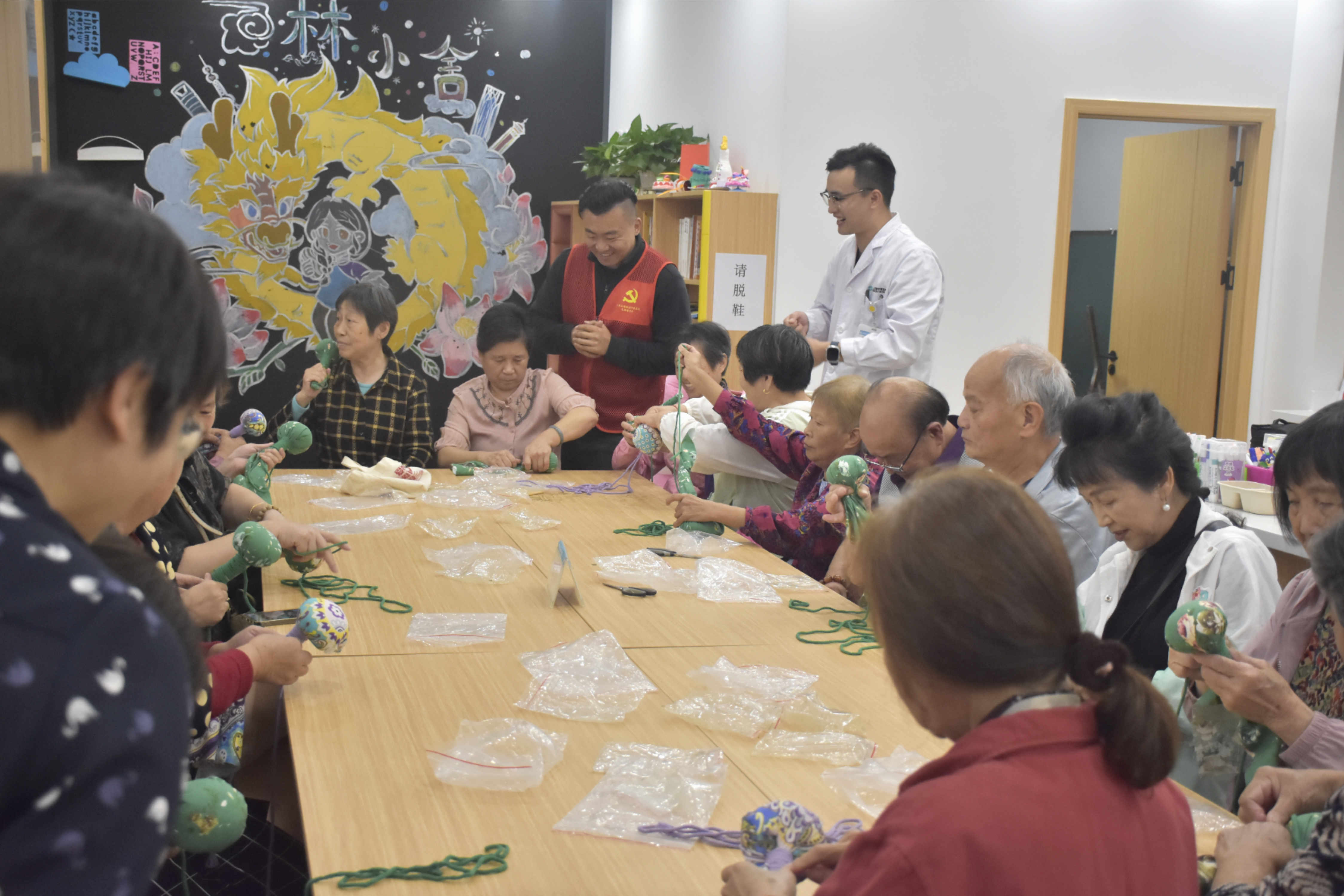 “张叔,快去签到,要开始发放制作物料了。”在永泰社区“林小舍”、瀚锦苑居委活动室,徐浦中医医院的志愿者们通过教授老年朋友手工制作,将爱老敬老之意寄存于艾香养生锤中慰问社区老人。