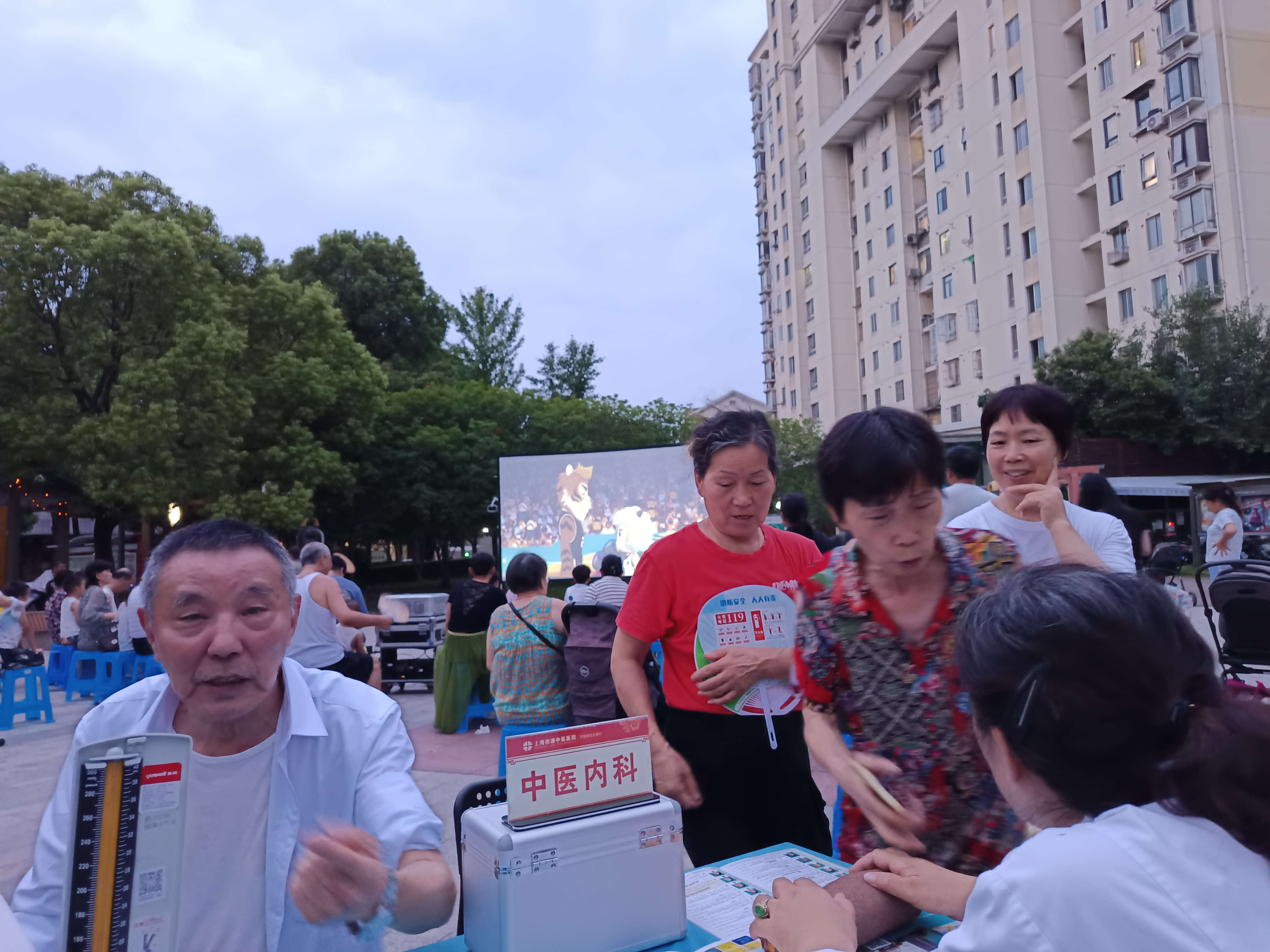 上海徐浦中医医院准备了创口贴、清凉油、跌打药膏、速效救心丸等医疗保障服务。同时,还特别增设健康服务环节,为前来观影的居民、特别是老年居民提供免费血压测量、中医搭脉问诊、口腔咨询服务。