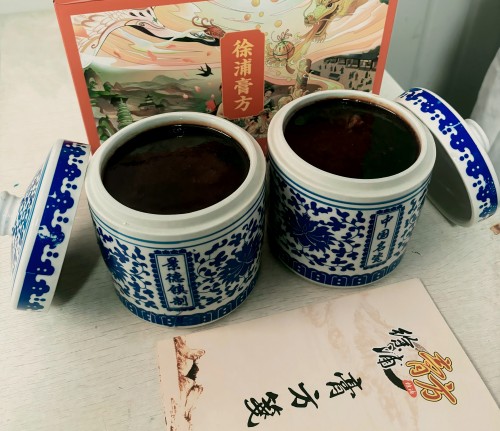 最后,将熬制好的膏方倒入清洁干净的瓷质容器中,待其冷却后加盖密封。为了确保膏方的质量和口感,容器需要先不加盖放置一夜,待膏体完全冷却后再加盖保存。膏方应存放在阴凉干燥处,避免阳光直射和高温环境。